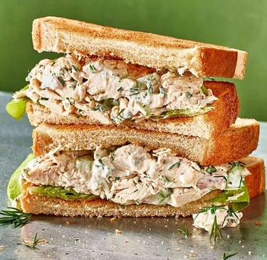 A hearty protein packed 5oz of chicken salad nestled in lettuce served on multigrain bread.