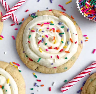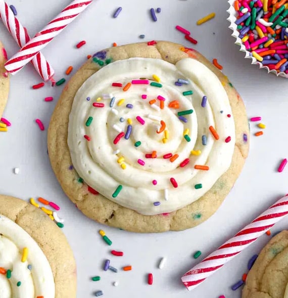 Colorful, sprinkle-loaded cookies bursting with vibrant birthday cake flavor!