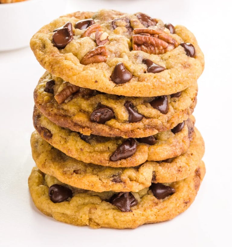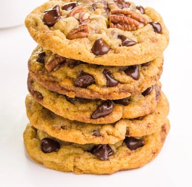 Loaded with melty chocolate chunks and crunchy pecan pieces, this cookie is a delightful blend of sweets and nuts.